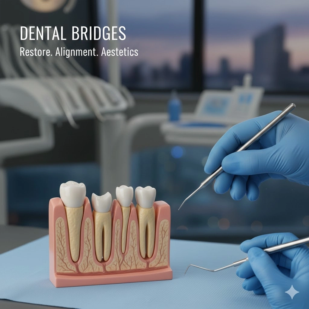 Dental bridges are used to replace one or more missing teeth by anchoring artificial teeth to adjacent natural teeth or dental implants. They help restore proper bite alignment, chewing ability, and aesthetics.